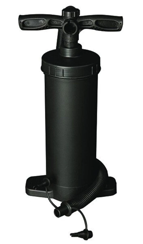 Don’t have an electrical outlet? Don’t worry! Includes accordion hose with 3 nozzles and a needle to fit small, medium and large air valves. Inflates on both the up and down strokes 3 separate nozzles including flexible accordion hose Pump height 14.5″