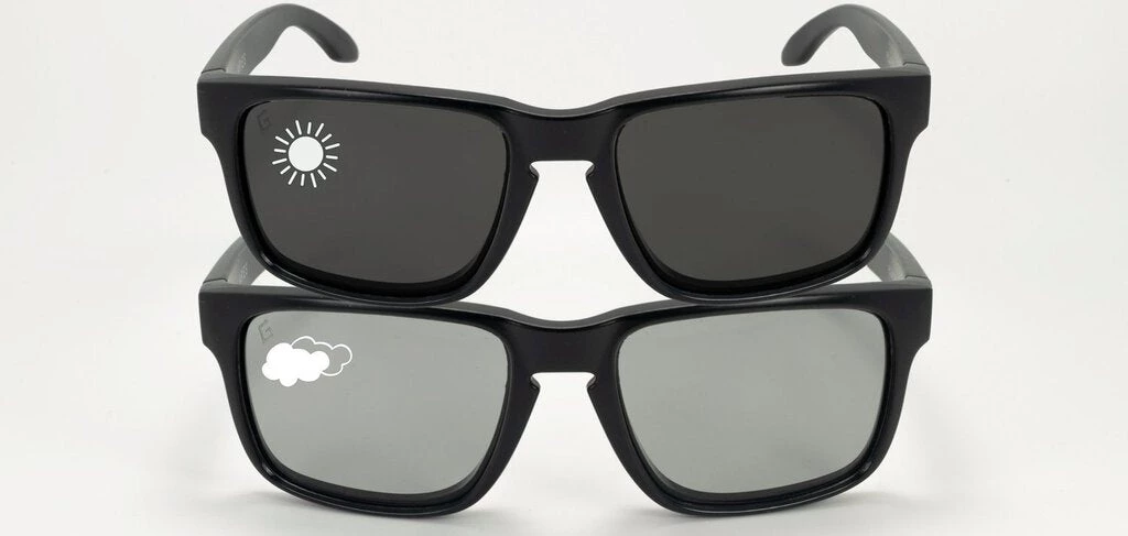 ntroducing a new photochromatic lens to the Aries frame! What does photochromatic mean? When it is brighter outside, the lens becomes darker to block more light. When it is cloudy or darker out, the lens becomes more clear to block less light, letting you see more easily. Never have to change lenses again! Polarized lenses 100% UVA/UVB protection Durable, polycarbonate resin frame Microfiber bag for storage and cleaning.