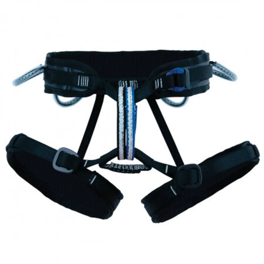 Ideally suited for lightweight trad climbing, the Trad features the extra secure, locking speed buckle (never slips or loosens), four high-strength gear loops, reinforced tie-in points, and a high-strength haul loop. One simple, patented buckle adjusts the leg loop size and the rise (distance between waist and leg loops) for a natural, comfortable fit. Two belay loops help to minimize clutter on multi-pitch routes or when making multiple rappels. Weight: 16.5 oz. (467 g) (medium) Sizes: s, m, l CE/UIAA certified Colors: black, red, blue