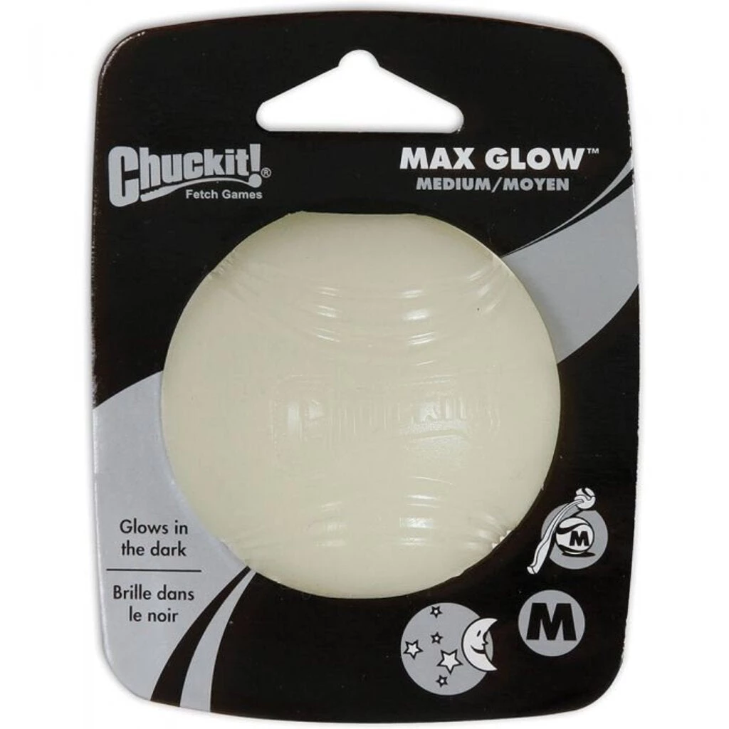 The Chuckit!® Max Glow® Ball gives your dog something to jump for. This durable rubber ball glows in the dark to allow the game to keep going when the sun goes down. It charges quickly under any bright light taking just five minutes to generate 20 to 30 minutes of glowing playtime (no batteries or cords needed). Easy to clean and your dog will love this textured grip-able rubber ball made just the right size to use perfectly with the medium Chuckit! Sports Launcher (sold separately). Med: 2.5″ ball compatible with Classic, Sport and Pro style launchers