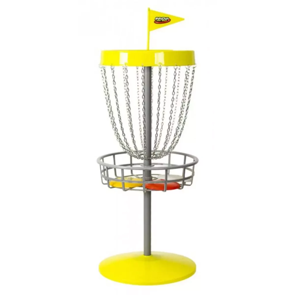 This fun mini target is a scaled down version of the popular Pro DISCatcher found at many courses. This little target is compact, portable, easy to setup, and includes 5 mini discs to play with. Make up games, create epic mini disc golf holes, or just have fun in your backyard, around the house, or in the office. This set is perfect for kids.