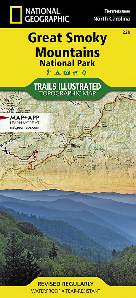 America’s most visited national park and a UNESCO World Heritage Site, Great Smoky Mountains National Park is both renowned for its diversity of plant and animal life and rich in remnants of Southern Appalachian mountain culture. National Geographic’s Trails Illustrated map of the park combines unparalleled detail and valuable information for outdoor enthusiasts seeking to explore all the area has to offer with particular attention shown to backcountry campsites, shelters, and stream crossings. A detailed profile of the Appalachian National Scenic Trail, which snakes along the ridge of the Great Smoky Mountains, provides a handy tool for hikers. The map features many key points of interest as well, including Cades Cove, Fontana Lake, Maryville, and Gatlinburg. With over 800 miles of mapped trails, the Great Smoky Mountains National Park map can guide you off the beaten path and back again. The clearly marked trails include mileages between intersections. The map base includes conto…