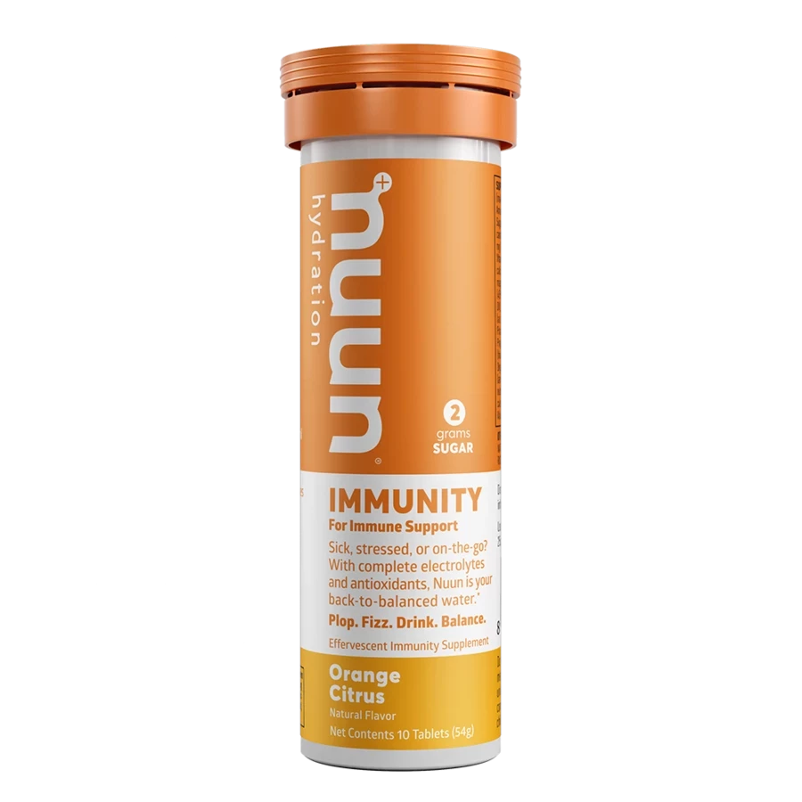 Nuun Immunity helps support the natural defense systems your body uses to fight off cold and flu symptoms. A healthy immune system starts with proper hydrations and was designed for all day consumption! Nuun Immunity was created with athletes in mind. When your body is pushed to the limits, your immune system becomes more vulnerable. Non-GMO, gluten free. 1 tablet has 15 calories & 2 g. of sugar.