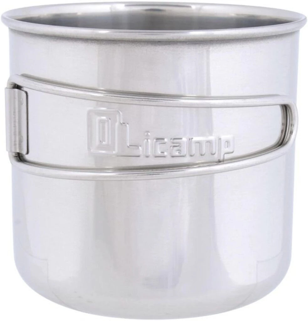 No wasted space when packing a cup. This unique design from Olicamp is designed to fit over the end of a round 1 Qt. Nalgene, as well as most other round 1 Qt. bottles and the Klean Kanteen 40 oz, eliminating the wasted space of packing a traditional cup. Made from high quality 18/8 stainless steel, the wire handles fold flat to save space and extend enough to use the cup to cook without burning your fingers. Also great as a measuring cup with easy to read graduations on the side of the cup. Capacity: 16 oz. Weight: 8 oz (227 g) Size: 3.9 x 3.5 in